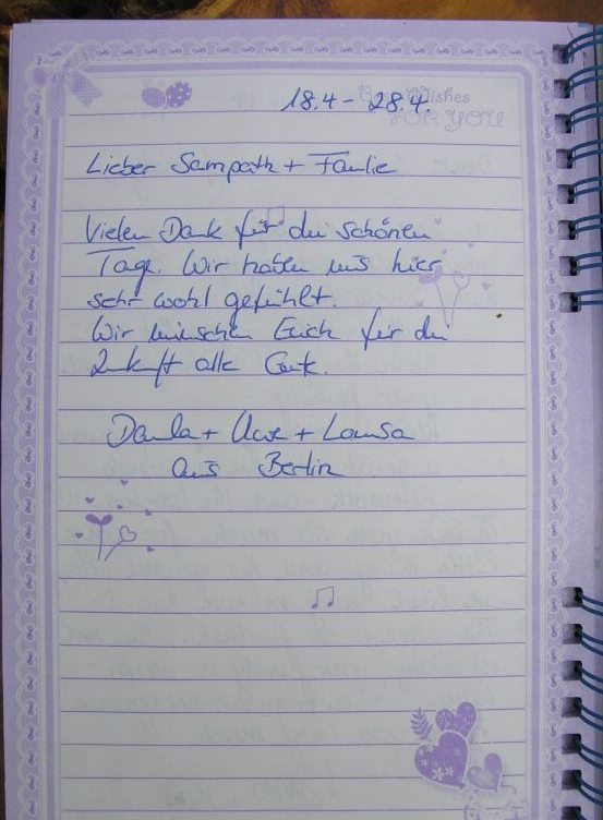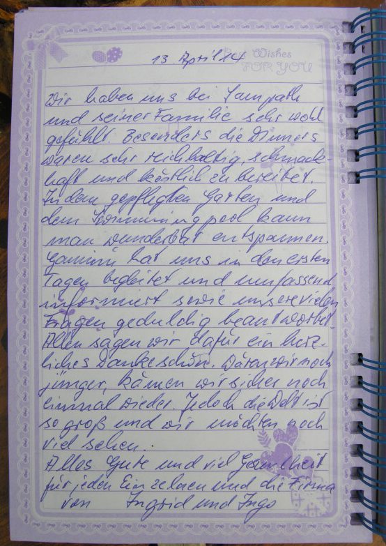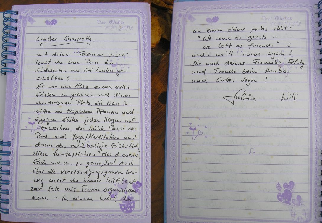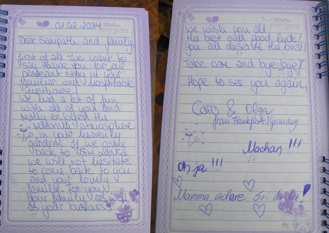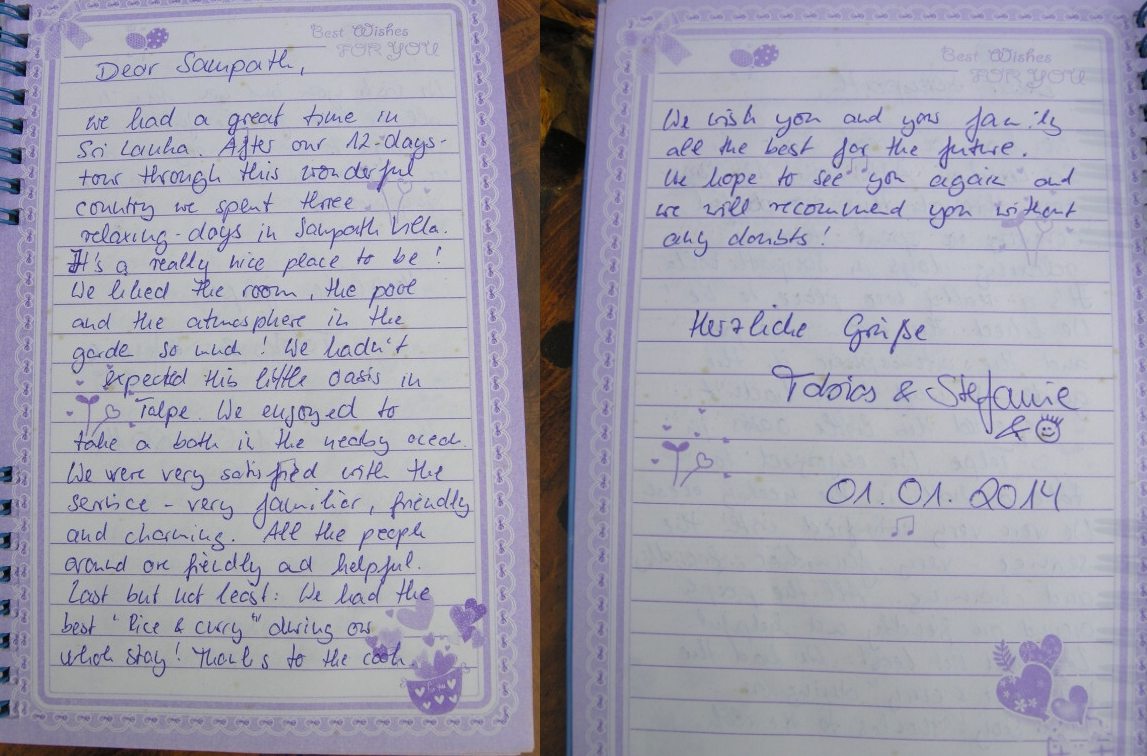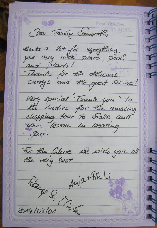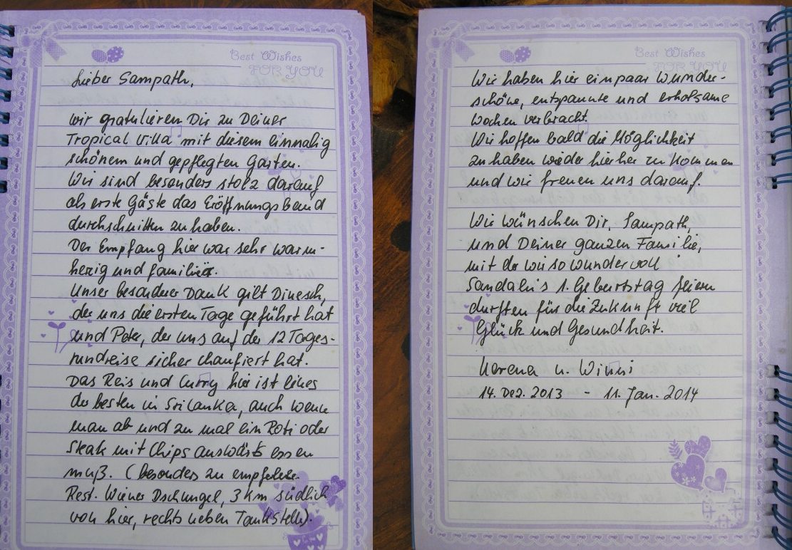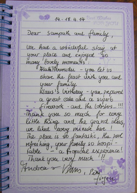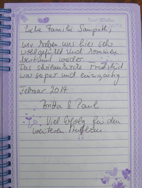 sich unsere Gaeste mit ihren Bewertungen nur im Gaestebuch in der Sampath