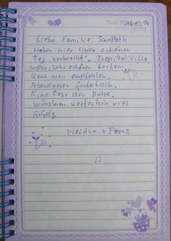 Bewertungen aus dem Gaestebuch in der Villa