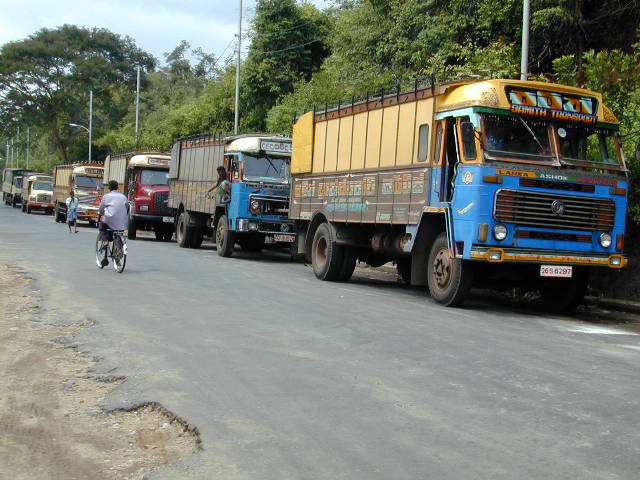 -- Ankunft in Tricomalee - Hafen mit warteten LKWs