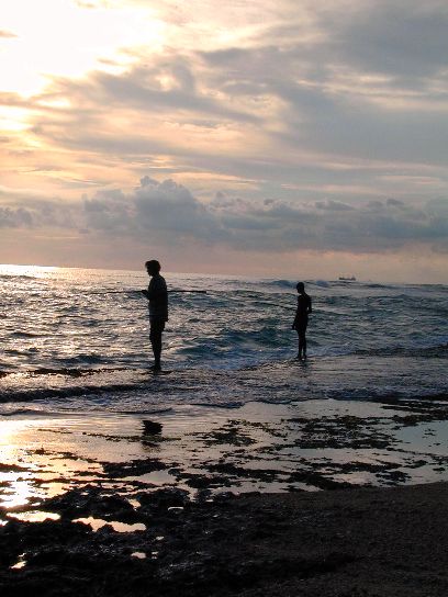 -- Einheimische Angler in Talpe , kurz vor Sonnenuntergang