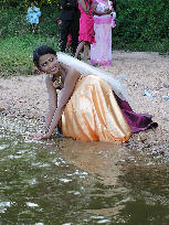 Nachmittag kam eine Hochzeits Gesellschaft an den See .